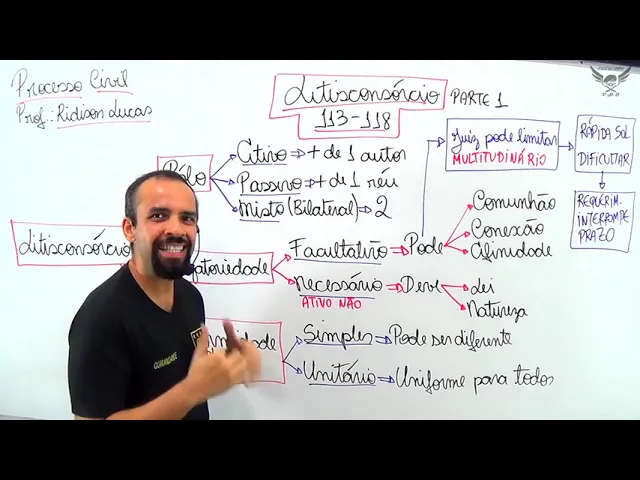um salve das galáxias pessoal Professor Rita São Lucas na área Vamos destruir o assunto litisconsórcio esse tema está entre os artigos 113 a 118 do nosso código de processo civil quando eu falo em elites consórcio essa expressão você tem que entender o seguinte lites vem da palavra litigantes então eu tenho litigantes em consórcio Eu tenho um consórcio de litigantes Eu tenho um conjunto de litigantes eu tô diante de um litros consórcio quando eu tenho dois ou mais autores ou quando eu tenho dois ou mais Réus ou quando no mesmo processo eu tenho vários autores e vários Réus isso aqui é o que lhes consórcio fechou até aí tem muita gente que tem dificuldade sobre esse tema Mas não é para temer esse tema é tranquilo porque quando eu falo em litros consórcio Nós estudamos que o consórcio pode ser ativo passivo ele pode ser misto ou bilateral ele pode você necessário facultativo esse litisconsórcio pode ser unitário ou simples aí ele pega e te coloca na prova litisconsórcio passivo necessário unitário aí tu meu Deus tu não entende nada fica tranquilo que vai ficar muito fácil para ti agora então vejam só quando eu falo em litisconsórcio esse conjunto de litigantes ele pode ser classificado de acordo com o Polo de acordo com a obrigatoriedade e de acordo com a uniformidade da decisão primeiro eu vou falar contigo sobre o Polo quando eu falo em Polo o litisconsórcio ele pode ser ativo passivo ou misto ou então bilateral tem autores que dão esse nome bilateral que que eles consórcio ativo passivo ou misto ativo é quando eu estou diante de um processo em que eu tenho dois ou mais autores então quando eu tenho dois ou mais autores eu estou diante de litros consórcio que Ativo eu tô no leite consórcio passivo quando eu tenho dois ou mais o quê Réus quando eu tenho mais de um real e misto quando no processo Eu tenho dois ou mais autores e também dois ou mais Réus então eu já sei que que ele desconsórcio ativo passivo e misto pelo próprio nome você mata se eu falasse na prova bem assim para ti qual é o nome do litisconsórcio em que eu tenho dois ou mais Réus esse consórcio ele é passivo e qual é o nome do livro dos consórcio em que eu tenho cinco autores e 7 Réus eu tô diante de um litros consórcio misto ou bilateral E qual é o nome do litisconsórcio em que eu tenho quatro autores quatro autores eu tô diante de leite de consórcio ativo fechou agora que tu sabe que o litisconsórcio pode ser ativo passivo o misto esse litisconsórcio ativo passivo misto ele também se classifica de acordo com a obrigatoriedade quando eu falo obrigatoriedade é pelo seguinte você tá no litisconsórcio você tá junto com outras pessoas do mesmo processo vários autores e vários Réus e essa união de autores essa união de Réus ela pode ser formada de forma obrigatória pela lei Ou seja a lei ou a natureza da causa dizem é obrigado vocês tem que dar juntos de forma obrigada então quando é obrigado quando você tem a obrigação de estar junto no litisconsórcio eu tô diante de um litros consórcio que necessário agora quando você apenas pode você não tem obrigação eu tô diante de leite consórcio que facultativo então o que que eu lhe disse consórcio facultativo e aquele que tu não é obrigado a estar junto com outras pessoas é uma opção sua é uma faculdade mas quando eu falo em faculdade vida de concurseiro é difícil e uma das coisas que eu mais digo é concurseiro ele tem que se afastar de pessoas tóxicas nós temos que ter em mente que a gente tem que estar perto de pessoas que tenha comunhão com os nossos pensamentos que tenham conexão com os nossos desejos e que tenham afinidade com a gente do mesmo jeito eu não processo tu quer fazer um leite consórcio tu já imaginou tu chegar lá no processo tu olha para cara da outra parte quem é você não sei o que que tu tá fazendo aqui sei lá velho gente não para eu estar no litisconsórcio eu tenho que estar algo ligando Então apesar do litisconsórcio ser facultativo eu posso posso só que eu vou estar no litisconsórcio facultativo desde que eu tenho que comunhão desde que eu tenho que conexão no pedido ou caso de pedir desde que eu tenho Que afinidade em Provas É só tu gravar essas três palavras eu tenho que ter comunhão de direitos ou de obrigações eu tenho que ter conexão pelo pedido ou pela causa de pedir isso Como assim imagina o seguinte imagina que eu tô numa faculdade com você Eu tô numa faculdade e chega um professor e fala o seguinte Olha é nessa sala de aula eu discrimino a b e c e tem cinco pessoas que são discriminadas por esse professor na sala de aula eu te pergunto cada um pode entrar com uma ação separada pode ou não pode pode mas se esse cinco quiserem entrar com ação em conjunto eles podem porque porque eu tô diante de um caso que existe comunhão eu tô diante de um caso em que eles podem fazer o mesmo pedido na justiça então eles facultativamente podem participar do que de um litisconsórcio então prateles consórcio lembre-se eu tenho que ter comunhão conexão ou afinidade tem concursos que tu se aprofunda um pouquinho mais tá que não é o caso não há necessidade para esses casos aqui mas quando você for estudar mais à frente ou então um outro curso de CPC que eu faço que eu faço contigo lá para outras carreiras jurídicas eles vão te falar que esse por afinidade aqui é um litisconsórcio impróprio mas assim só título de conhecimento para nossa prova aqui eu quero que tu grave eu posso participar no litisconsórcio facultativo posso mas para isso eu e as outras partes que estão comigo nós temos que ter o que comunhão conexão ou afinidade fechou até aí beleza eu já sei o que que ele desconsórcio facultativo e Eu lhes consórcio necessário o lix consórcio necessário é aquele que você é obrigado a estar com outras partes no mesmo processo obrigado Tu não tem opção isso mas como assim é po