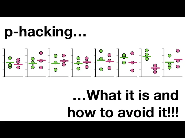 P hackin don't do it if you do it it's a shame skin quest yeah hello I'm Josh stormer and welcome to stat quest today we're gonna talk about P hacking what it is and how to avoid it note this stack quest assumes that you are already familiar with p-values if not check out the quests imagine there was a virus and we wanted to develop a drug to reduce the time it took to recover from it so he created a bunch of candidate drugs and we tested each one to find out if any of them worked so we measured how long it took for three people to recover from the virus without any drugs and then we gave three people drug a and measured how long it took them to recover just by looking at the graph it appears that drug a did not shorten recovery very much if at all so we measure how long it takes three more people to recover without any medicine and then we give three people drug B and measure how long it takes them to recover again just by looking at the graph it doesn't look like drug B helped people recover any faster than people without any medicine so we just keep testing drugs until we get one that really looks like it does a good job and at long last it looks like drugs II does a great job reducing the amount of time it takes to recover from the virus so we calculate the means of the two groups and do a statistical test to compare the means and we get a p-value equal to 0. 02 and since 0. 02 is less than 0.