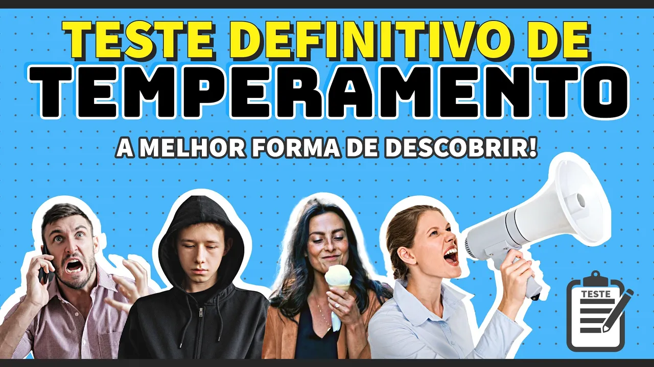 o papel e caneta na mão porque hoje é dia de fazer teste para finalmente descobrir o seu temperamento Ah tá bom Ruth mas eu já fiz teste não não senhor não senhora esse teste é completo esse teste é o melhor que você já viu na sua vida porque ele vai fazer análise da estrutura do seu temperamento e de uma vez por todas se você responder tudo certinho Você vai descobrir se você é colérico se você é sanguíneo se você é melancólico ou se você é fleumático Então por nada nesse mundo sai desse vídeo sem terminar