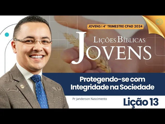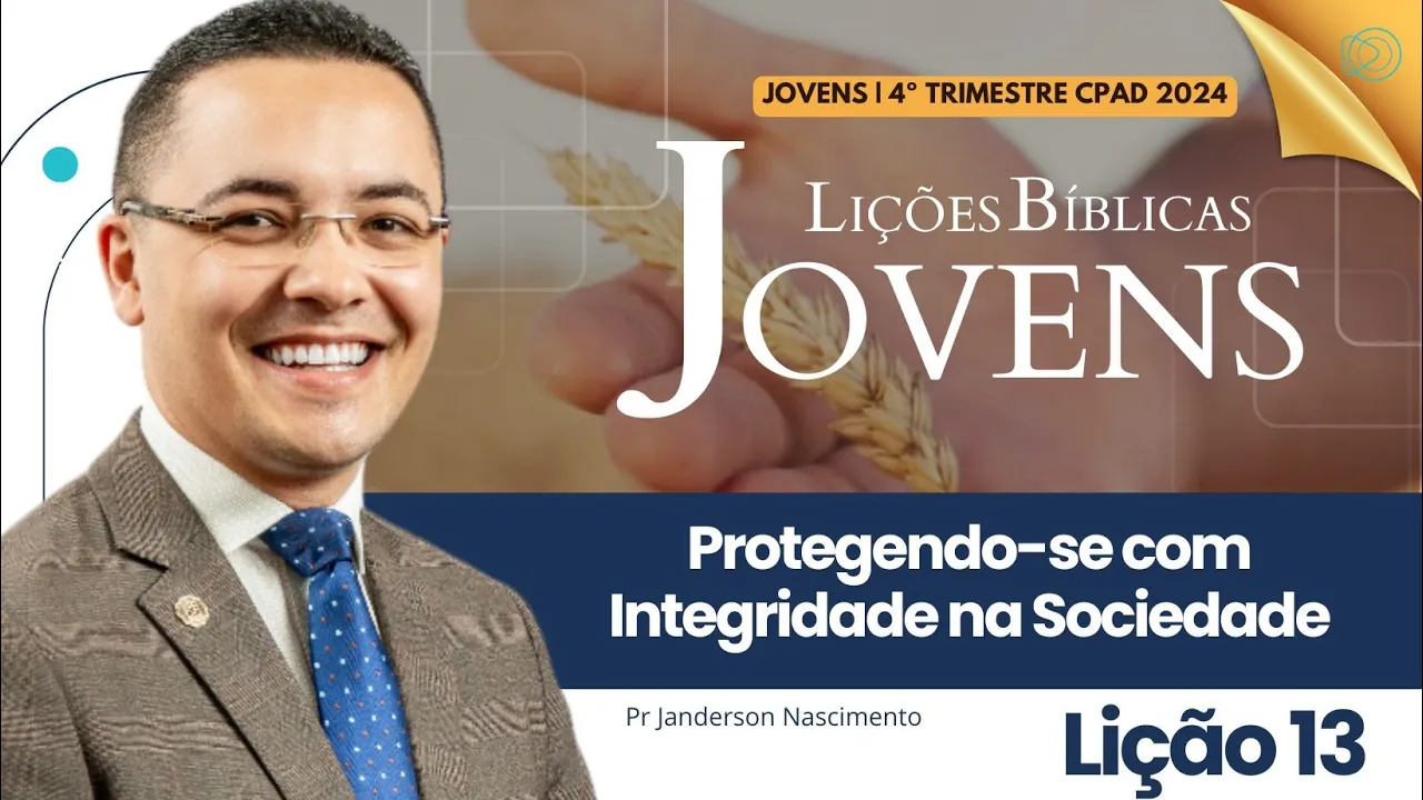 chegamos então na última lição deste quarto trimestre da CPAD de 2024 aqui da classe dos jovens texto escrito e comentado pelo Pastor Marcelo de Oliveira na última lição nós vamos trabalhar sobre o tema protegendo-se com integridade na sociedade eu espero muito que o senhor possa falar com você através dessa lição e você pode iniciar muito bem a sua aula a partir de algumas bases bíblicas que a própria lição já traz a primeira delas é o texto principal você pode fazer a leitura do texto principal que se localiza em provérbios Capítulo 28 Versículo 12 junto com