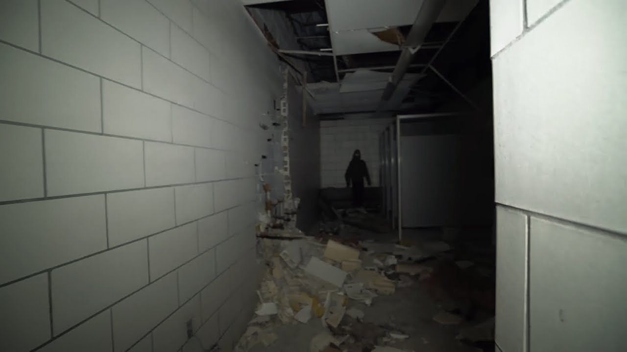 in a situation like that and tries to find a way out of the building without being noticed unfortunately the car goes around the building and out of his field of vision which means that by the time the car is parked in front of the factory the man could be anywhere oh God someone's right out there what do I do I couldn't tell what he was holding the man can be seen walking through the woods toward the front entrance of the factory to make matters much much worse it appears as though the man has something in