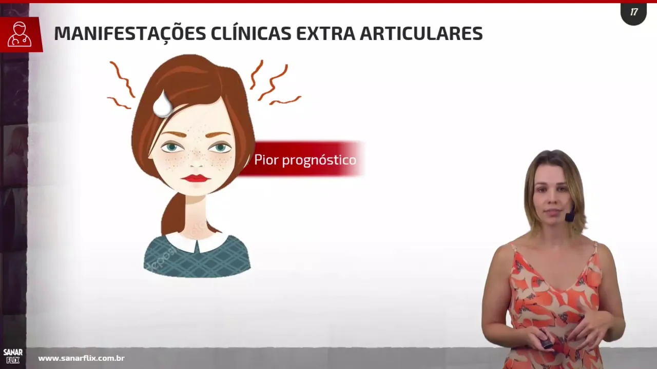 a gente tem muito precoce a gente não considera pode ser que seja um quadro ainda autolimitado ea presença de provas de atividade inflamatória então o pcr ou vhs anormal e para a gente classificar esse paciente ele tem que ter seis pontos tá então pelo menos seis pontos para artrite reumatoide de fator de mau prognóstico a gente vai ter o que a idade impaciente muito jovem com artrite reumatoide fator reumatoide em altos títulos e também as manifestações extra-articulares consequentemente o anti-ccp em outros títulos provas de atividade inflamatória persistentemente elevados é muito importante muitas articulações acometidas quanto