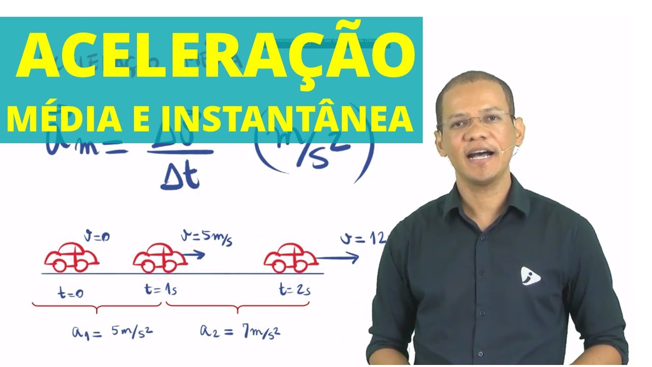 nesse vídeo A gente vai ver a aceleração média aceleração instantânea claro que a gente vai começar com a primeira delas aceleração média Primeiro vamos relembrar Quais são as equaçõeszinhas que você tem que saber a aceleração média a gente calcula ela como V final menos V Inicial / T final menos ter Inicial ou então numa notação um pouco mais compacta aceleração média igual a Delta V por delta t Vamos fazer um exemplozinho aqui numérico só pra gente relembrar como que faz esse cálculo da aceleração média Então vou pegar nosso menino aqui do do Chapéu ele é
