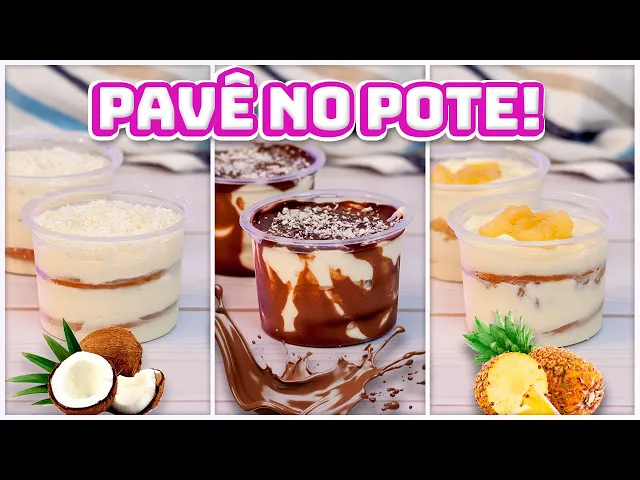 pavê is one of your favorite desserts that I bring here to the channel and it's no surprise, right? After all, it's a sweet that every Brazilian loves and that's precisely why it's a sales success, as if a dessert made in Brazil wasn't enough. jar What brings a lot of practicality for production and even for sale to see in the jar is a sweet that won't give you a headache during delivery or in transport If you're taking it to work, college or even to sell On the street you can take it without fear of the candy spoiling or arriving ugly to the customer, so with that in mind today I brought three more flavors of pavé in the jar for you to sell and make a lot of money [Music] Hello, I'm Camila Beatriz and today we're going prepare three pavés in the pot using just one cream as a base, let's start our pavé by making coconut cream and for this I'm going to put a box or can of condensed milk in the pot, you can use either skimmed or wholemeal Seme [Applause] [Music] Here below in the description I will leave the model of this pan and all the utensils that I use during the video, including the packaging, the small pot that I will use to assemble the pavé, now we will add 200 ml of coconut milk, which is a small bottle or a small box [Music] [Music] and we will also add 50 grams of grated coconut, you can use wet, sweetened or dry, whichever you prefer or whatever you find most easily near your house, we will put it here in the pan to make For this cream we will need a liter of whole milk I will first open the box and leave about 200 ml more or less reserved [Music] I will leave this one separate so we can use it in a little while now let's add all the rest of the milk here in the pan [Music] the next ingredient we will need is the egg yolk, I took two eggs here and you stop just the yolk So let's break the part first in the jar and we can now put it here in the pan and do this with the second one too [Music] before we start cooking This cream here let's take the milk that we left reserved and let's add cornstarch here I'm putting 60 grams which is approximately 6 tablespoons let's pour it on the table Let's put it all here and stir with this spoon to make it dissolve well now that it's already dissolved I'm going to leave it aside here in the other pavé videos here on the channel which if you haven't watched it yet it will be down here in the description because it's worth watching I received some comments like this isn't pavé, it's porridge or else it won't taste like porridge and so on, so let's first look at is it pavé or isn't it to see, yes, this here is pavé, a dessert is a pavé when it is assembled in layers So it needs to have a biscuit, which is usually a champagne biscuit, but we also make it with Maria biscuits with Oreo and sometimes even with cake and it needs to have a layer of cream, cream biscuit, cream biscuit and you assemble your pavé, there is no right cream to make for see it can be any cream so you can use this cream which is a cream thickened with starch you can use a cream that has brigadeiro as a base a ganache And so on and as for Porridge I don't know what this trend is that started that way everyone thinks that anything that contains cornstarch or cornstarch is Porridge It's not just in my videos, I've seen it in several other videos out there people commenting Ah, this isn't such a dessert, this is porridge and only because it contains cornstarch and That's not exactly how it works, right?