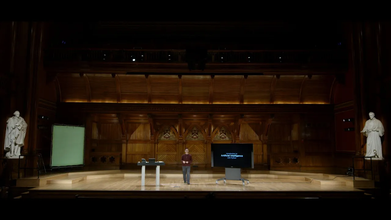 [MUSIC PLAYING] BRIAN YU: All right. Welcome back, everyone, to an introduction to artificial intelligence with Python. Last time we took a look at search problems in particular, where we have AI agents that are trying to solve some sort of problem by taking actions in some sort of environment, whether that environment is trying to take actions by playing moves in a game, or whether those actions are something like trying to figure out where to make turns in order to get driving directions from point A to point B. This time we're going to turn our attention more