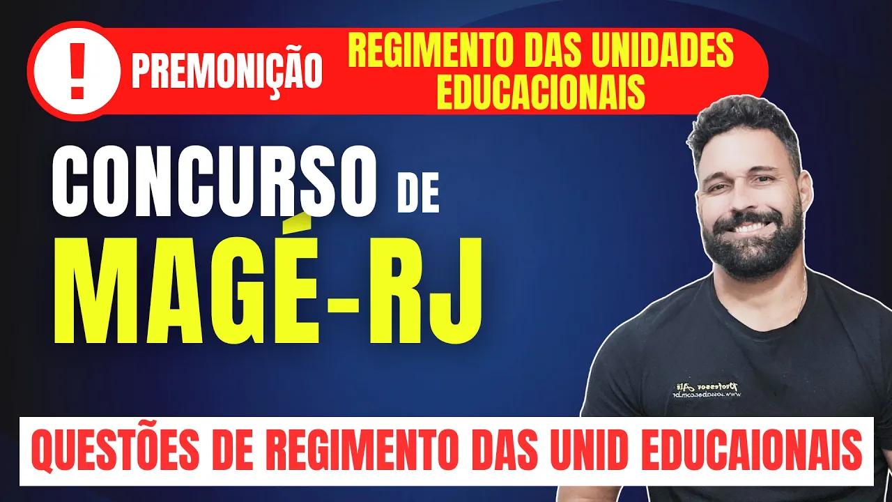 Olá pessoal beleza profel aqui vamos falar de mais questões né são muitas questões Professor são muitas questões a gente pegou 10 questões aqui de cada de legislação de Magé na parte mais Educacional né 10 questões de estatuto 10 questões de lei orgânica 10 questões agora de Regimento vamos paraar vamos paraar ó de Regimento das unidades escolares tá eu trouxe aqui os pontos mais importantes do Regimento Obviamente você é bom você dar uma lida no material que a banca deixou disponív é bom também você estudar com a gente a gente fez um resumão de vídeoaula tem