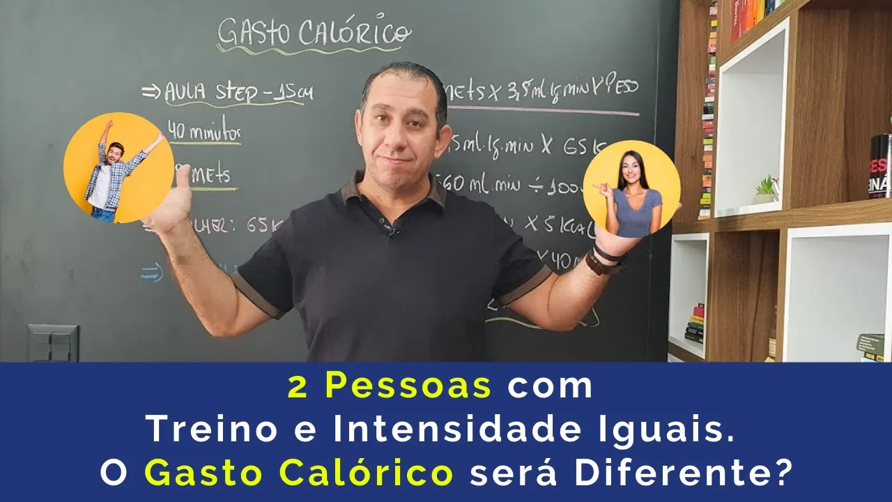 12 alunos fazendo a mesma aula na mesma intensidade o gasto calórico é diferente eu sou Professor Doutor Fábio assistindo viajando pela fisiologia e hoje vou responder essa pergunta para você Fala galera beleza é o seguinte ela tem recebido muitas perguntas aí sobre gasto calórico então eu tô fazendo mais um vídeo aqui sobre gasto calórico EA pergunta que eu vou responder hoje é a seguinte professor se dois alunos estão fazendo exatamente a mesma aula na academia na mesma intensidade Porque que o gasto calórico é diferente basicamente por uma razão muito simples se a gente considerar tá se a gente considerar que duas pessoas diferentes por exemplo um homem e uma mulher estão fazendo a mesma aula por exemplo uma aula de step com a plataforma na altura de 15cm beleza e que esses dois alunos vão realmente executar todos os movimentos que forem solicitados durante essa bom então eles estarão participando da mesma aula da mesma intensidade média da aula e o gasto calórico vai ser diferente porque porque são pessoas que têm peso corporal diferente se você pegar um homem e uma mulher Obrigatoriamente na maioria das vezes o homem vai ter um peso corporal maior do que a mulher e quem tem peso corporal maior para o mesmo tipo de exercício para mesma intensidade vai ter um gasto calórico maior em relação aquela pessoa que tem um peso corporal menor e está fazendo a mesma atividade Por que que quem é mais pesado também tende a ser mais alto quem é mais pesado é mais alto tende a ter mais massa muscular tende a ter mais células tende a ter mais mitocôndrias e importantes são células que precisam Obrigatoriamente produzir energia para poder sobreviver e sustentar inclusive esse modelo de exercício que vai fazer então para ficar bem claro aqui para todo mundo eu preparei aqui no quadro do viajando pela fisiologia 1e e o aplicado para a gente entender então vamos lá nós vamos considerar uma aula convencional de step de academia com a plataforma de 15 centímetros esta aula vai ter 40 minutos e a gente sabe pelo compêndio de atividade física do Paulo fale Latte que uma aula de step ela tem em média em média oito unidades metabólicas de intensidade ou seja uma aula de step com a plataforma de 15 centímetros eu para eu participar desta aula significa que o meu gasto energético vai ser oito vezes acima do gasto energético de ficar no nível de repouso beleza e Aqui nós temos dois alunos que vão participar dessa aula tem uma mulher que pesa 65 kg e tem um homem que pesa o 93kg então partindo do princípio que essa mulher esse homem vão executar todos os movimentos solicitados lá pela professora de estepe e eles vão fazer a aula na intensidade aproximadamente de oito metros e partindo do princípio que a mulher e o homem também vão completar a aulas 40 minutos como é que a gente estima agora o gasto calórico bom a gente precisa de uma fórmula matemática que este me ou que me permite transformar unidade metabólica em quilocalorias tanto precisa de uma fórmula que me permita transformar unidades metabólicas para quilocaloria e Existem várias fórmulas eu vou te apresentar aqui hoje uma possibilidade para você poder fazer isso que o próprio compreende de atividade física ele acaba apresentando que nada mais é do que a fórmula de gasto calórico do Colégio Americano de Medicina do esporte então vamos lá vamos entender da forma a fórmula então presta atenção aqui olha aqui para mim vamos lá gasto calórico é e a intensidade do treino em Metz x 3,5 milímetros por quilo de peso por minuto de consumo de oxigênio vezes o peso corporal da pessoa em quilogramas então o que que a fórmula pede para mim a fórmula pede para mim duas informações sobre o aluno primeiro Qual que é o peso corporal portanto em quilogramas e qual que é a intensidade da aula por isso que eu te falei que a intensidade da aula tem como eu eu aferir durante a aula mas é pouco prático para você lá no dia a dia você não vai me colocar um ventilômetro um K4 na pessoa e vai falar faz aula de step aí se ele que o cara tá pagando academia primeiro porque academia nem vai investir em um aparelho como K4 que é caro então pra gente ter ideia mais aproximada desse gasto calórico a primeiro estratégia que tem eh usar o compêndio de atividades é transformar a intensidade das modalidades que tem no Comper de unidades metabólicas para em quilocalorias e uma das formas que me permite fazer isso é a fórmula do Colégio Americano de Medicina do esporte então vamos lá então eu preciso dar bem intensidade desta aula em Maps e preciso do Peso corporal do meu aluno vamos lá no caso da aula de step com a plataforma de 15 centímetros Qual que é a intensidade dada pelo compêndio de atividade física oito unidades metabólicas então eu vou colocar aqui ó 8 metros beleza vezes 3. 5 ml por quilo de peso por minuto porque porque uma unidade metabólica equivale a três. 5 ml por quilo de peso por minuto de consumo de oxigênio então se eu tenho 18 unidades metabólicas eu preciso saber quantos mililitros de oxigênio consumido por quilo de peso por minuto representa oito unidades metabólicas por isso que eu multiplico bom então 8x 3.