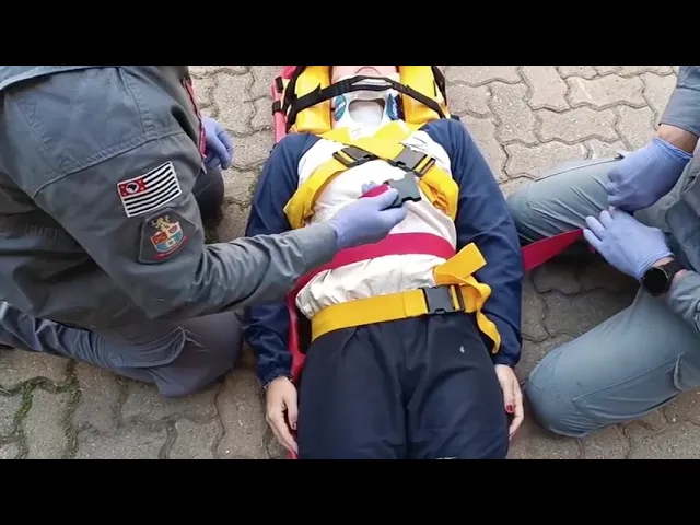 [Música] neste momento nós vamos falar sobre a preparação da prancha longa para o uso na ocorrência é importante que o bombeiro abra todos os tirantes e faça o ajuste necessário para que no momento em que colocar a vítima sobre a prancha o equipamento não venha atrapalhar o procedimento correto o tirante do braço ele deve ser retirado da prancha notem que o bombeiro faz a abertura completa do tirante com a finalidade de auxiliar no momento do colocação da vítima sobre a prancha após a abertura completa dos tirantes bombeiro também deve retirar os tirantes do imobilizador lateral