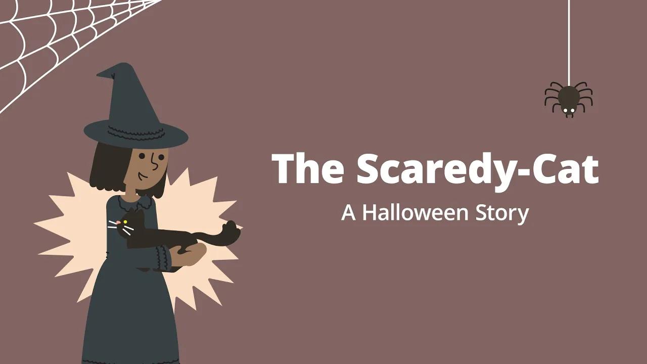 The Scaredy-Cat One Halloween night, a young witch lost her black cat. "Here, kitty kitty! " the witch called, but the cat did not come out.