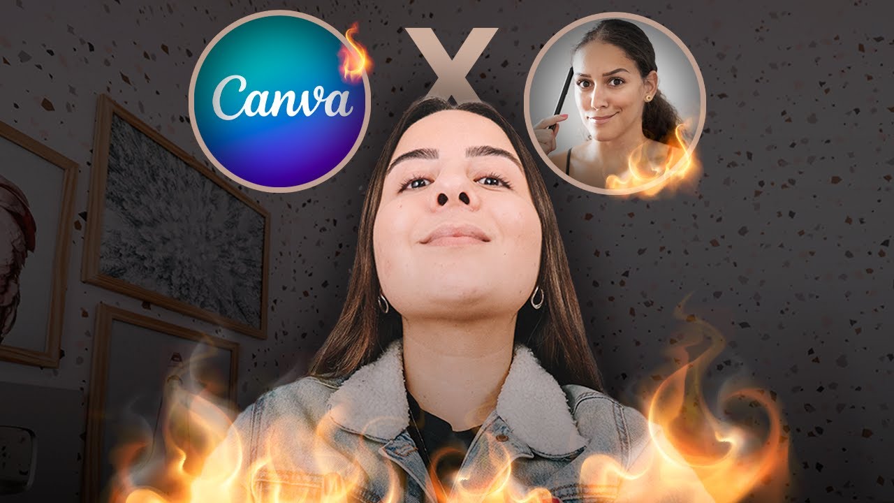 né que vai precisar fazer mas dá para fazer isso perfeitamente também sem assinar o canva pro certo então depois que eu retirei o fundo eu vou baixar essa foto aqui com o fundo transparente só para eu poder jogar ela por cima ali tranquilamente depois da página um de novo ó aí agora eu vou colocar do mesmo tamanhinho aqui né a foto e agora se eu quiser eu posso brincar de tacar as coisas por trás de mim ó outra coisa que eu também posso fazer que eu quero inclusive fazer nessa thumbnail aqui já é colocar um