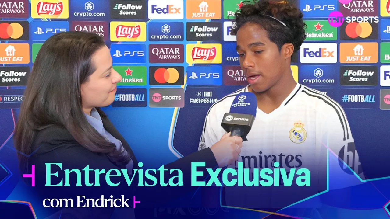 [Música] pessoal estamos aqui com ele o cara que não pode ter mais estrela hendrick estreando na Champions PL Bernabeu lotado marcando um Gol como é que tu te sente Ah muito feliz né agradeço muito a Deus por por essa noite incrível e é uma noite que vai ficar marcada para sempre Só tenho que agradecer a Deus que que passou na tua cabeça na hora porque a gente vê que tu recebe a bola tem várias opções Mas tu tá focado no gol o que que acontece na tua cabeça ali que tu vai é o gol Ah