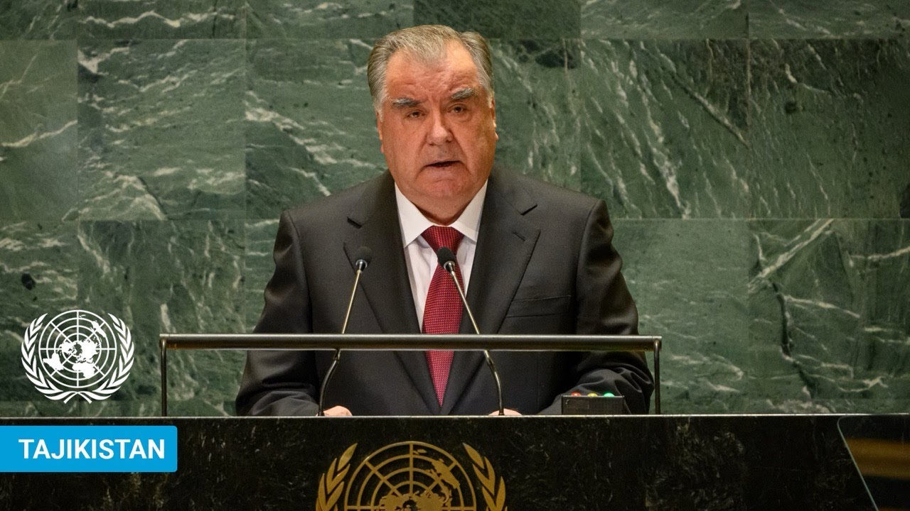 the 78th session of the United Nations General Assembly and correspond to our shared commitments human beings are members of a whole in the creation of fun a sense and soul if one member is Afflicted with pain other members uneasy will remain I thank you for attention on behalf of the assembly I wish to thank the president of the Republic of Tajikistan for the statement just made and I request protocol to escort his Excellency