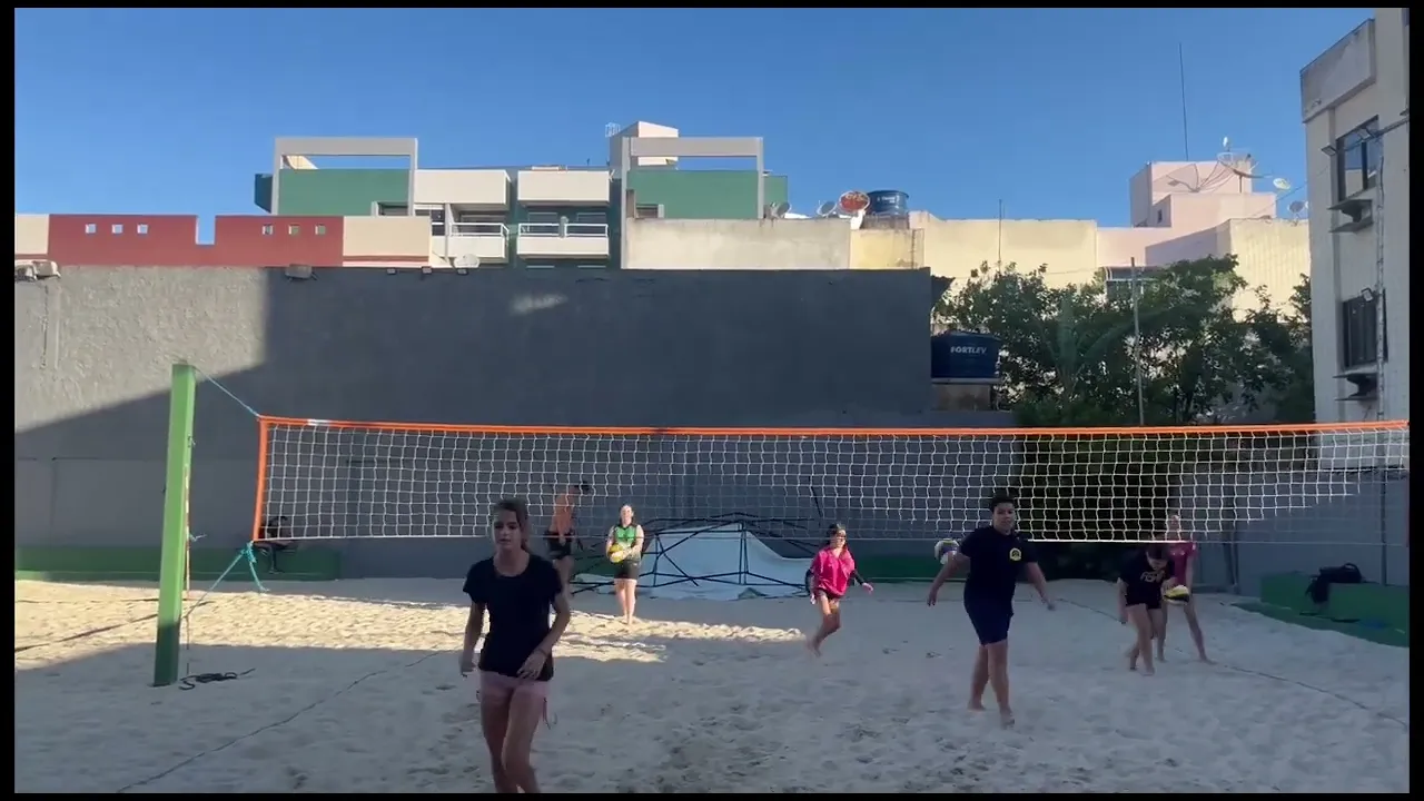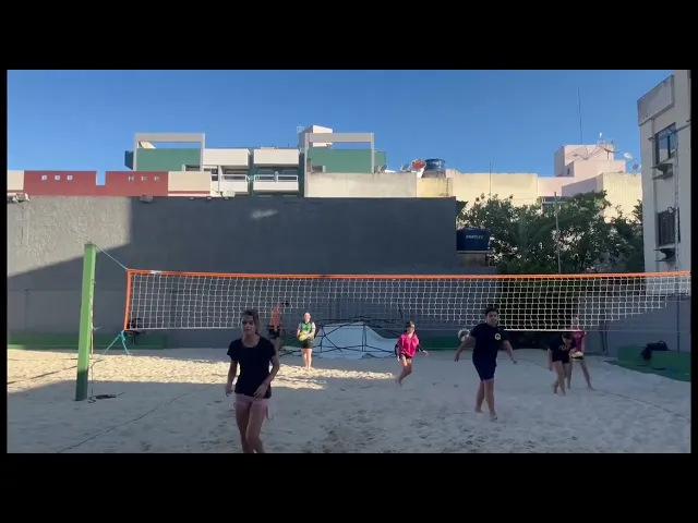 ajustes necessários para conseguir atacar a bola no ponto mais alto de uma forma adequada e por ser iniciantes muitas vezes esse ajuste não é feito da forma adequada vai a ver oscilação que é normal né Tanto do levantamento quanto da do aproveitamento do ataque mas a gente cria mais um elemento de dificuldade que é a necessidade da Luna se ajustar ao levantamento para efetuar o ataque e no quinto e último exercício dessa aula a gente torna a atividade um pouco mais complexa ainda já que agora a bola vem da outra quadra então elas estão trabalhando