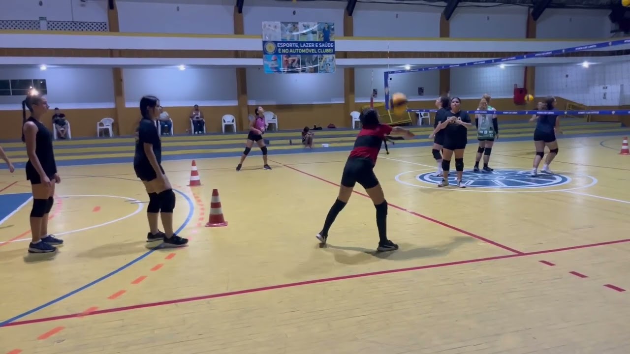 da dessa aula nós colocamos algumas alunas levantando e as demais continuam atacando então agora elas têm que fazer o passe vai sair o levantamento da colega do colega que está perto da rede e quem passou deve saltar fazer toda a movimentação que foram feit que foi feita nos exercícios anteriores e golpear a bola o exercício ele traz uma dificuldade bem maior porque por se tratar de alunos iniciantes vai haver variação no levantamento em relação à altura da bola a distância em relação à rede isso requer que quem está atacando tem a capacidade de fazer os