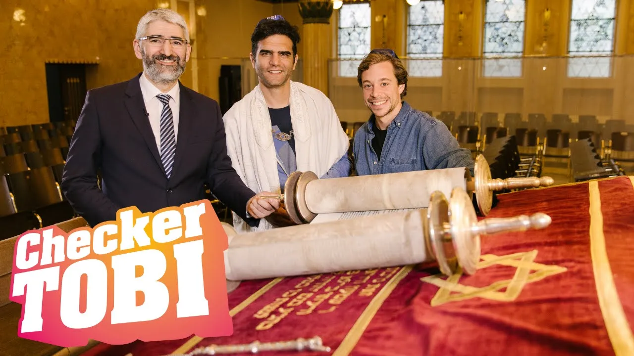 Die beiden holen gerade die Thora aus dem Schrank. Was das genau ist, das seht ihr in der Sendung. Weil heute geht's ums Judentum.