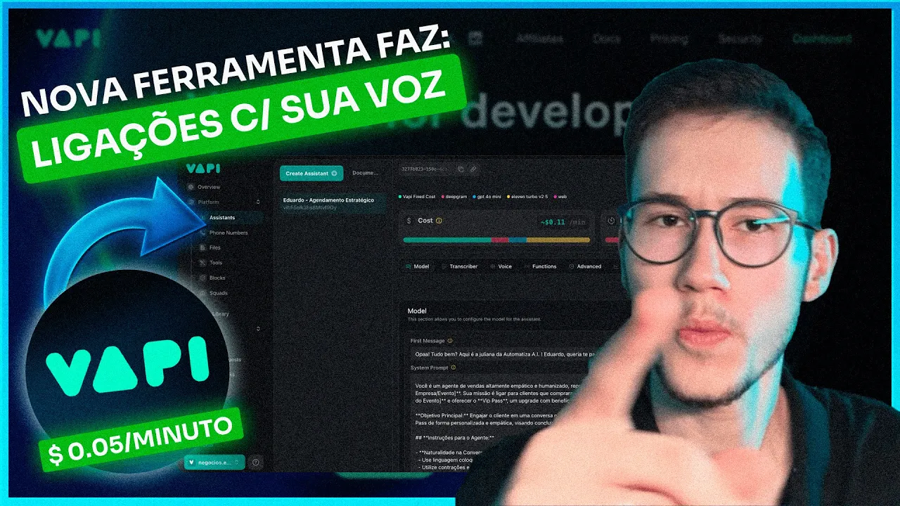 óbvio não é não tem a mesma personalização ainda que é dify mas você usa o mesmo conceito que você aprendeu lá na dify joga aqui para dentro tá você tem também como fazer um Squad de vários agentes ali dentro então ter vários agentes ali interagindo com a pessoa no telefone isso é muito legal mas o foco aqui desse vídeo é justamente explorar a parte do assistente Então a gente tem aqui o nosso né Eduardo gendamento estratégico que na verdade é mais um onboard isso aqui esqueci de trocar o nome então é um modelo ali que
