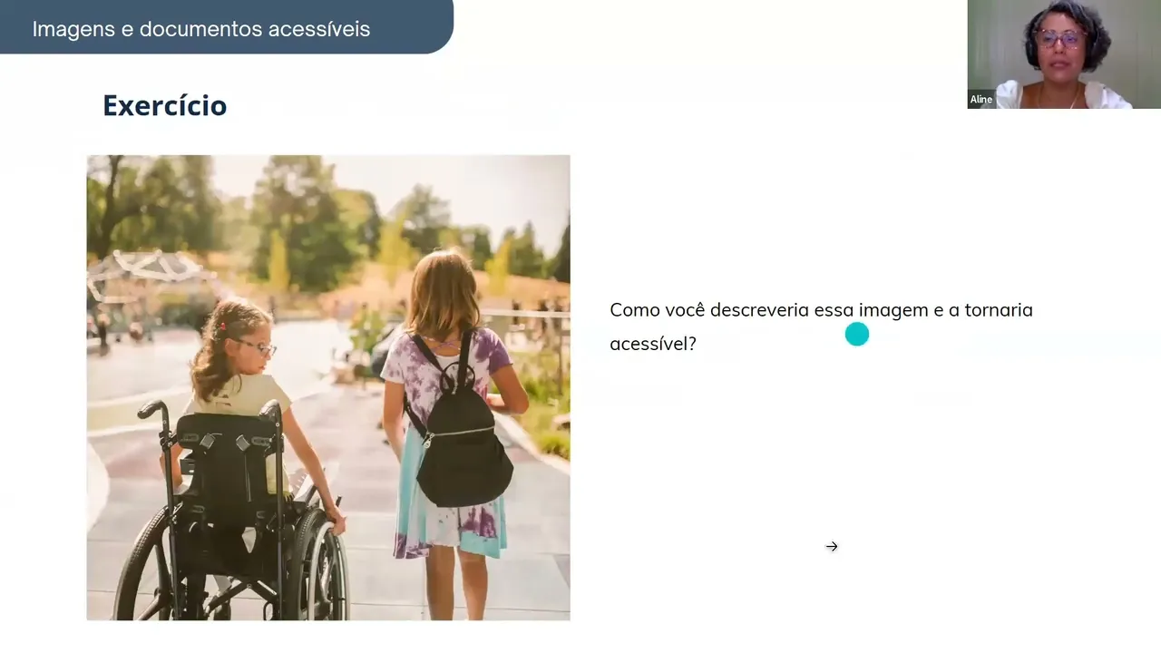 foi que Aline falou quando a gente não precisa a gente não convive a gente não tem ninguém na família a gente não tem um colega do lado que que usa aquilo parece besteira e a gente já ouviu isso de colegas da comunicação Ah mas escrever imagem quanto gente é o básico né a gente tem que tratar isso como eu tenho que botar um ponto final num texto né para ter para fechar o sentido ali daquela frase então A ideia é é essa também de Sensibilizar as pessoas que não é mais trabalho é o que tem