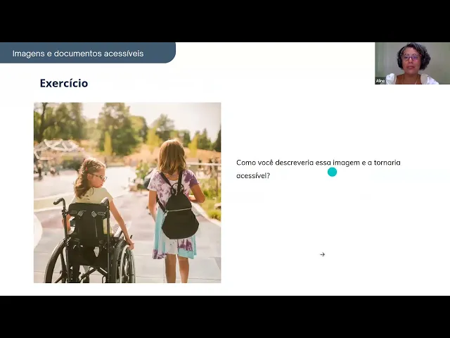 imaginam em geral a gente da comunicação usa muita imagem mesmo né foto ilustração mas em geral as imagens que a gente tem que descrever mesmo né Em geral os servidores é gráfico tabela infográfico né coisas assim até um pouco mais talvez mais fáceis porque são muit são mais objetivas do que uma foto com pessoas Então eu acho que a gente chegou ao fim do nosso algum algum alguém mais Quer comentar alguma coisa sobre sua experiência antes de terminar deixa eu mostrar isso para vocês que é muito importante mas tá numa no nosso material também essa
