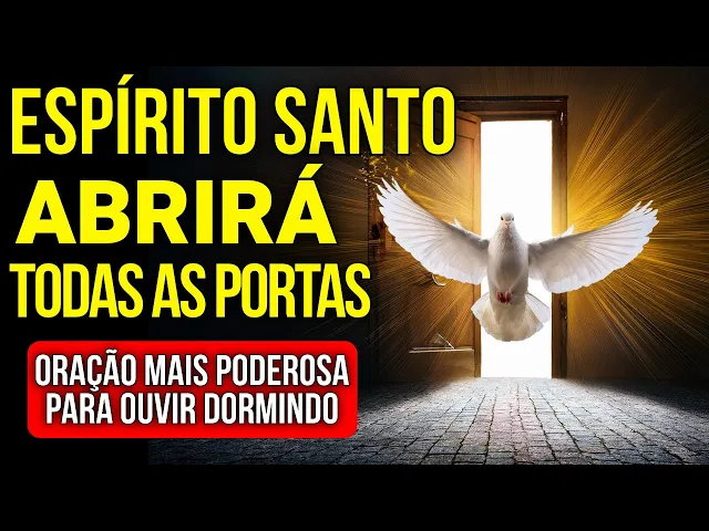 dons e talentos libertando-me de todo o mal Espírito Santo de Deus passe na Frente da minha vida e abra todas as portas que bloqueiam a minha existência espírito santo de Deus abra nesta noite todas as portas da felicidade para que a tristeza e a angústia sejam removidas da minha mente e do meu [Música] coração espírito santo de Deus abra todas as portas do amor genuíno para que eu encontre apoio nas pessoas que eu amo nos meus amigos e Familiares espírito santo de Deus abra todas as portas da abundância em minha vida para que nunca falte