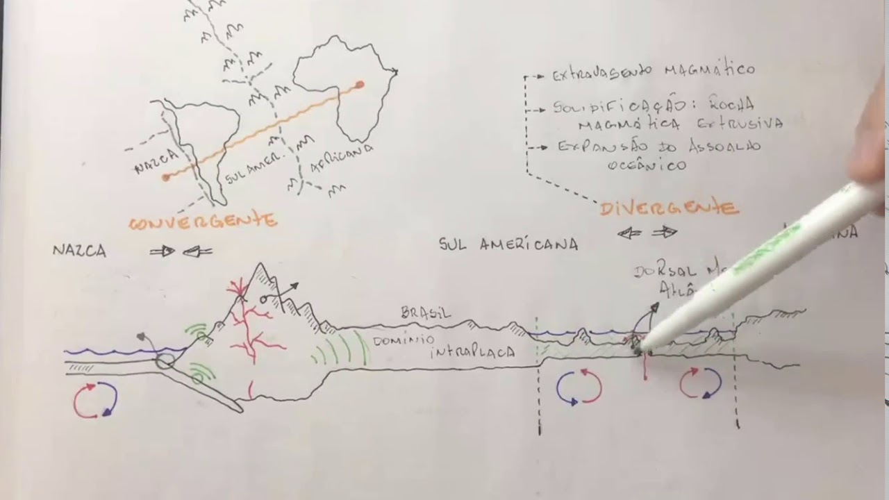 com a áfrica vai começar a formar as bacias de imagem para cima do território brasileiro a gente vai ter fases importantíssimas aí né somente a fase que passa do risco e para fase transicional onde a gente vai Ter de posição de sequências que vão se importantes para petróleo por exemplo vamos ver se tudo aí mais para frente eu sou gente andinas continuam em andamento e hoje o cenozóico você tem cinco milhões de anos até os dias de hoje a gente tem bastante sedimentação ligada dela tectônica todo mundo que já foi na praia aí já viu