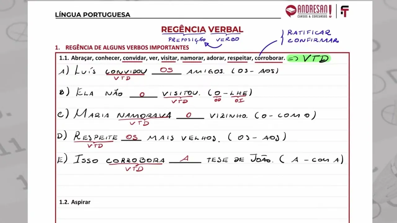 é outro verbo e quem colabora colabora com é outro verbo O corroborar que é confirmar é verbo transitivo direto então isso corrobora a tese de João ou seja isso confirma a tese de João muito bem muito bem muito bem pessoal dúvidas dúvidas aqui na no primeiro grupo de verbos por favor dúvidas não há dúvidas não Então pessoal sigamos sigamos sigamos sigamos vamos lá o próximo verbo é o verbo aspirar Agora sim ó dependendo do contexto o aspirar poderá ser verbo transitivo direto ou poderá ser verbo transitivo indireto tá Então depende do contexto o que que