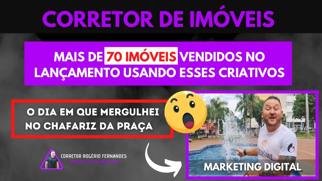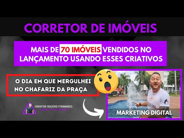 São Paulo sol domingo aqui é Rogério Fernandes sou corretor de imóveis especialista em marketing digital imobiliário eu vim trazer um vídeo bem interessante Aqui tem muita gente de pedido para eu mostrar Quais são os criativos dos alunos Quais são os criativos são utilizados nas minhas canções então a volta e mostrar a vocês alguns deles criativos que me fizeram vender muitos lotes lançamento né ele inclusive ao lançamento exemplo eu cheguei a vender mais de 70 lotes eu vou mostrar para vocês aqui quais são os criativos que eu utilizo que faz gerar muitos livros e vídeos com