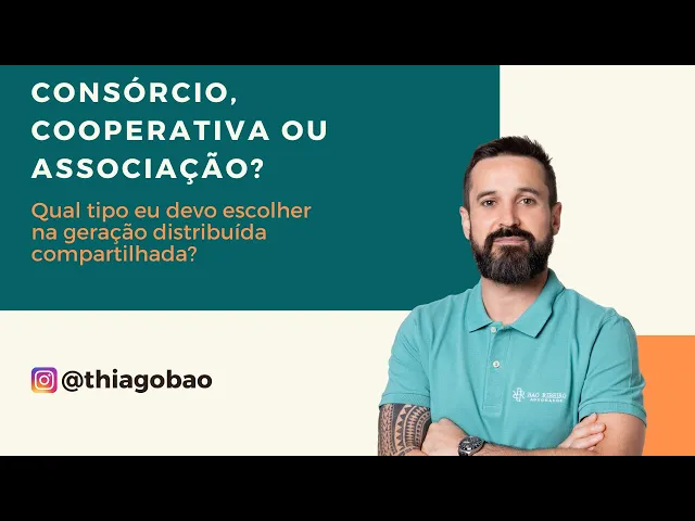 B gente no vídeo de hoje eu quero apresentar para vocês as diferenças entre o consórcio a associação e a cooperativa de geração compartilhada né de geração distribuída e a intenção aqui é mostrar um pouco o que que um se diferencia do outro Qual que é a vantagem e desvantagem e ao final dou a minha opinião do Qual modelo que eu acho que é o ideal para qualquer tipo de projeto de geração distribuída já que você tá aqui me assistindo me siga nas redes sociais me siga aqui no meu canal Aperte o Sininho para que você