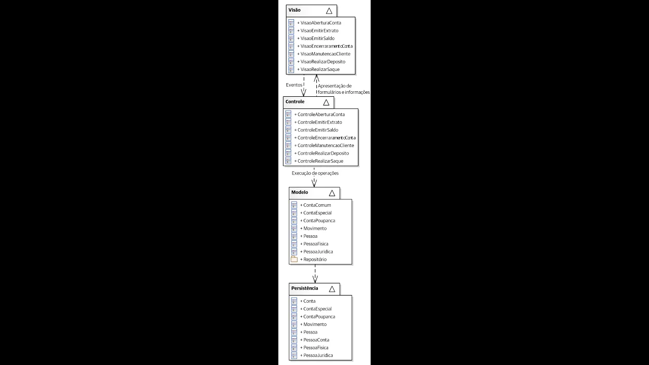 mais detalhado onde eu criei H um pacote representando a camada de visão ou de interface com usuário uma uma camada para conter ces de controle que interpretarão os eventos de visão e uma camada contendo as classes ID entidade que conterão a lógica do negócio haverá um sub pacote para conter as classes de repositório do padrão de persistência repositório que já foi ensinado em outro vídeo e uma camada de persistência onde as classes de entidades serão mapeadas e persistidas em tabelas relacionais quando usar a arquitetura em camadas quando é necessário construir mais recursos em cima de