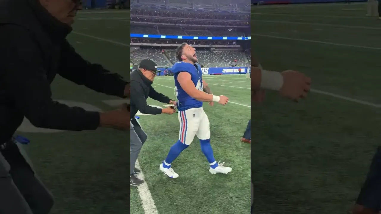 Giantsโ Cam Skattebo strips off shirt with...