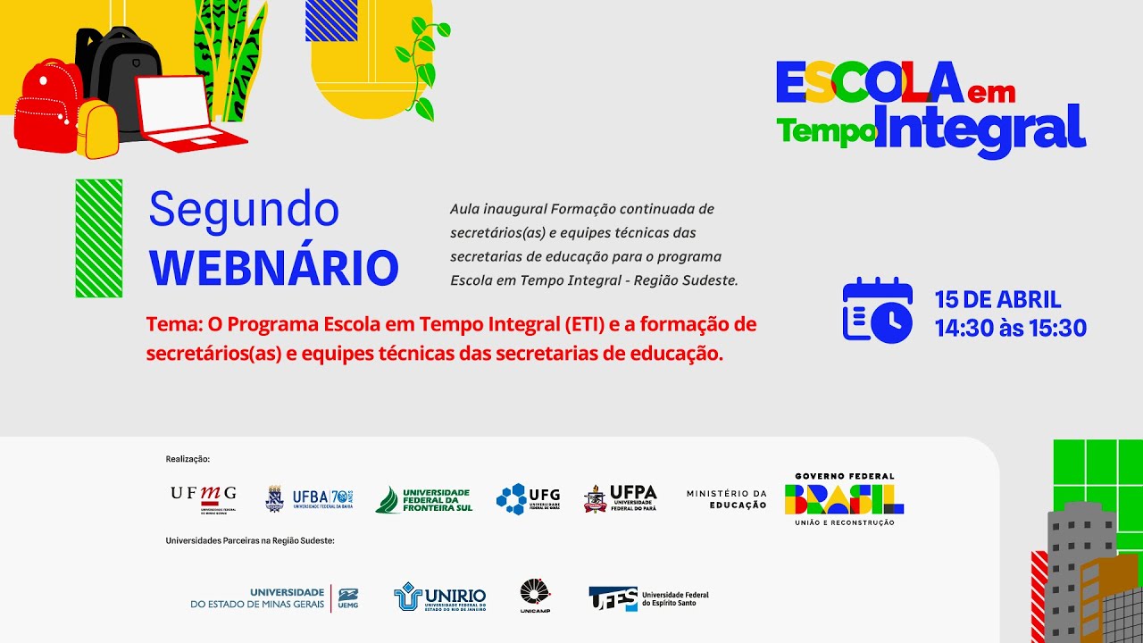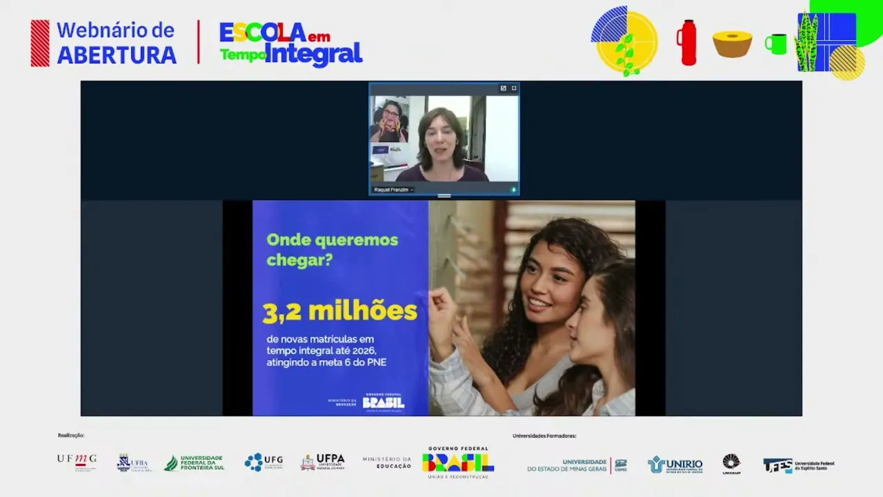 de educação integral e tempo integral na diretoria de políticas e diretrizes da educação integral básica aqui na Secretaria de Educação básica do MEC em nome de todo o Ministério da Educação eu dou as boas-vindas aos mais de 600 600 espectadores e espectadoras desse webinário de eh início de um processo de formação eh dos Municípios dos Estados das equipes técnicas que estão à frente eh da da política de educação integral em tempo integral lá nos territórios então é uma alegria estar aqui com vocês nessa tarde e eu quero começar eh também trazendo aqui a o meu