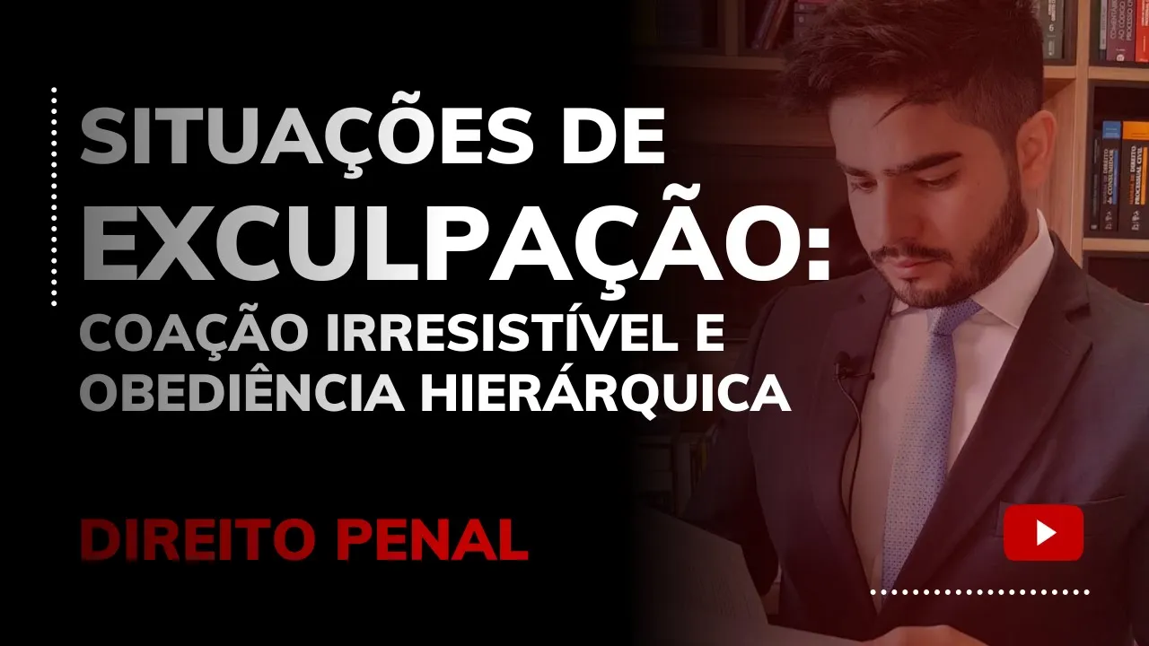 [Música] Olá seja muito bem-vindo ou muito bem-vinda mais uma aula de direito penal Eu sou professor Paulo Henrique Leme e hoje a gente vai trabalhar aqui as situações desculpação as hipóteses que levam a eliminação da culpabilidade para a maioria da doutrina de olho comigo aqui na tela você vai verificar que eu estou te apresentando a redação do artigo 22 e ali que a gente tem o pontapé inicial do nosso conteúdo verifica comigo Diz assim o artigo 22 se o fato é cometido sobre Equação Irresistível ou em estrita obediência a ordem não manifestamente ilegal de superior