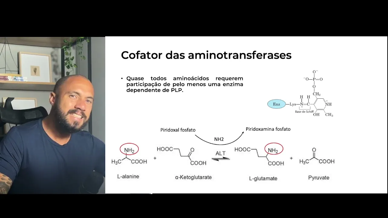 Olá tudo bem seja muito bem-vindo aqui a mais uma aula dando continuidade a nosso Instituto das da bioquímica e metabolismo das vitaminas na aula de Hoje iremos falar sobre a vitamina B6 a piridoxina que é uma vitamina muito importante em nosso na verdade todas são né mas a vitamina B6 em particular ela participa de inúmeras vias importantes vão desde da da hemoglobina metabolismo de aminoácidos metabolismo de carnitina metabolismo de um carbono enfim a vitamina B6 é uma vitamina muito importante em nosso organismo tá a gente vai entender um pouco mais sobre as suas funções metabólicas é uma vitamina hidrossolúvel que tem como principal mecanismo de ação em nosso organismo como é que a vitamina B6 age como cofator tá ela é importante para diversas vias e nessas vias ela auxilia a ação de um enzima ou seja enzimas dependem da vitamina B6 para exercerem as suas funções enzimas de diferentes vias metabólicas Principalmente as enzimas que metabolizam os aminoácidos quase todos os aminoácidos dependem de aminotransferases que são enzimas que fazem a transferência de grupamento Amino né Essas aminas transferases dependem de vitamina BC então a gente pode dizer que o metabolismo dos aminoácidos como um todo Depende de vitamina B6 a gente fala da piridoxina né Eh que é como se fosse a molécula de base mas em nosso organismo a formativa dela é o piridoxal fosfato e a piridoxamina fosfato são formas ativas que agem como cofatores né auxiliando no funcionamento enzimático aqui a gente tem a base da piridoxina ou dos grupos de piridoxina que é esse anel de piridoxina e a partir da estrutura ligada no carb no qu a gente tem o piridoxal a piridoxamina ou a piridoxina e a depender da estrutura ligada nessa nesse anel quatro certo o piridoxal fosfato é quando a gente tem o fosfato ligado a ele ou piridoxal fosfato PLP ou a piridoxamina fosfato exercendo a sua função tá para exercer a sua função como cofator a vitamina B6 quando age como cofator auxiliando a ação de uma enzima precisa estar fosforilada o nome já tá dizendo piridoxal fosfato piridoxamina fosfato é a forma da enzima da da vitamina fosforilada que exerce a sua função e ela está presente nos alimentos em sua forma fosforilada também Principalmente nos alimentos de origem animal para ser absorvida elas precisam ser desfosforila existem enzimas que retiram esse grupo e O interessante é que ela vem do alimento fosforilada você tem que retirar o fosfato para absorver quando ela entra no seu óo ela é fosforilada novamente para permanecer lá dentro quando ela vai ser exportada ela é desfosforila quando chega nos tecidos ela é refos Então essa fosforilação desse fosforilação é importante para armazenamento entre aspas né para permanência da da vitamina B6 na célula e o seu transporte até os tecidos periféricos Tá certo a maioria da vitamina B6 ingerida na dieta é absorvida em geral ela é amplamente distribuída tanto em alimentos de origem animal quando tem alimentos de origem vegetal e comparando a a a avaliando a dieta de uma forma geral por mais que a a forma animal tem uma boa disponibilidade mas avaliando o consumo geral tanto animal como vegetal em média ela é uma vitamina que tem uma boa digestibilidade tá certo a gente encontra a forma glicosilada que é ligada a um glicídio o nome já tá dizendo predox Amina ligada a um glicídio glicosilada presente nos animais eh nos alimentos de origem vegetal desculpa a gente encontra a sua forma fosforilada nos alimentos de origem animal existem perdas pequenas com armazenamento e manipulação desses alimentos ricos em vitamina B6 mas quando a gente fala de tratamento térmico e cozimento existem perdas significativas mas ainda com essas perdas significativas a gente consegue obter boas quantidades de vitamina B6 na alimentação considerando a vasta distribuição dela nos alimentos certo então por mais que por ser uma vitamina hidrossolúvel A gente falou isso de de outras vitaminas né vitaminas solúveis em água tendem a ser perdida algumas são termossensíveis outras não mas elas são solúveis em água então métodos de cocção que envolvam cozimento em Água obviamente a depender do que você faça com essa água se você descarte você vai descartar inúmeros compostos que estão ali dissolvidos como as vitaminas Tá certo e O interessante é que o processamento térmico ele é algo que interfere em 1950 teve os casos dos bebês que apresentaram distúrbios neurológicos decorrente de uma deficiência de vitamina B6 porque foram fórmulas que tinham vitamina B6 em sua composição mas que passaram por tratamento térmico e essa e a disponibilidade ou a quantidade de vitamina B6 acabou caindo e esses bebês por deficiência de B6 Já que as fórmulas eram sua única fonte alimentar apresentaram distúrbios neurológicos certo por conta do tratamento térmico de fórmulas que era a sua única fonte alimentar E aí por isso que percebeu sua importância de ter até controle sobre o tratamento dessas fórmulas ingestão alimentar desses bebês como a gente falou a gente encontra nos nos animais e nos vegetais vitamina B6 está amplamente disponível Você pode até falar olha Professor mas o cozimento causa perdas de fato mas por exemplo o arroz branco cozido tem 0. 3 MG se você considerada lá o indivíduo precisa de 1. 7 Ou seja ainda tem uma boa uma boa uma boa quantidade de vitamina B6 né ainda disponibiliza uma boa quantidade de vitamina B6 a gente tem muita B6 em banana em batata em cereais em carne feijão né então perceba que ela está amplamente distribuída então se você é vegetariano ou não ainda assim você consegue ter uma boa disponibilidade de vitamina B6 Além do mais a vitamina B6 também é uma vitamina que é sintetizada pelas bactérias da nossa microbiota ainda não se sabe né é difícil quantificar isso quando a gente fala de microbiota porque o perfil de bactérias é algo que m