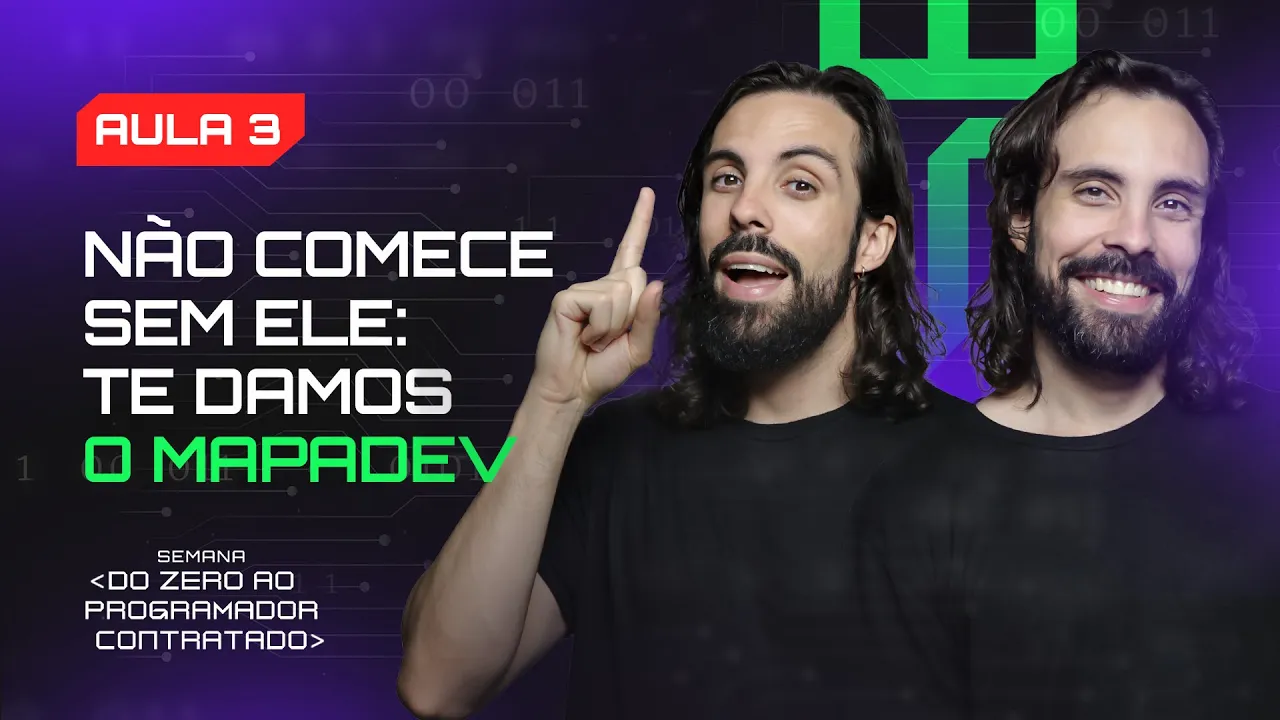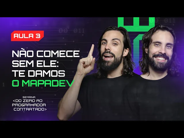 [Música] seja muito bem-vindo e muito bem-vinda a semana do zero ao programador contratado eu sou o Ricardo Dias e eu sou Roberto Dias e nós somos programadores a mais de 12 anos recrutadores na área de tecnologia e especialistas em empregabilidade na área de programação e também somos os criadores do Devin do e aqui na semana do zero ao programador contratado a gente vai te dar um mapa com um passo a passo capaz de te conseguir o primeiro emprego de até r$ 3. 000 como programador em 7 meses mesmo que tu esteja começando do zero e nunca tenha visto nada de programação Esse é o nível mais importante de todos porque a gente vai percorrer o mapa junto contigo esse aqui é o mapa que vai te levar do zero até tua primeira vaga de programador recebendo um salário de até R 3. 000 em 7 meses no nível um a gente tem mostrou as maiores Recompensas e oportunidades da área de programação a gente falou se tu precisa ou não fazer uma faculdade Falamos também da possibilidade de trabalhar remotamente de qualquer lugar e até para empresas gringas ganhando em dólar certamente tu sentiu aquela sensação de tá eu quero isso pra minha vida mas ao mesmo tempo tu pensou que seria uma jornada super longa e até duvidou se no teu caso isso se aplicaria certo mas calma fica até o fim porque é nessa aula que a gente vai te provar que tu também pode aprender programação e entrar na área Bora conhecer o nosso mapinha a gente vai te mostrar ele de fato só agora mas sem nem saber tu já conhece o comecinho dele porque dá uma olhada no ponto de partida o primeiro Pilar do nosso método é o plano Implacável e a gente já falou sobre ele no nível dois ele tá representado aqui no mapa como o início da tua jornada a gente recebe muita dúvida de quem tá começando a programação referente aos primeiros passos que área eu devo seguir quais linguagens estudar primeiro qual linguagem é mais fácil é muito bom que hoje em dia tenha muito conteúdo sobre programação na internet mas ao mesmo tempo isso pode te confundir mais do que te ajudar e nesse primeiro Pilar a gente quer limpar toda essa confusão de uma vez por todas e te colocar no caminho certo desde o começo limpa limpa limpa limpa tudo quando a gente sai numa jornada a gente precisa se preparar buscar informações com pessoas que sabem mais do que a gente e criar o nosso próprio mapa a vantagem aqui é que nós somos programadores há 12 anos seniors há mais de 6 anos e a a gente já percorreu esse caminho então a gente sabe todos os atalhos desse mapa e vamos te dar tudo isso de bandeja lá no segundo nível A gente também te falou que a área de programação é para qualquer pessoa e te passou Quatro Marcos do aprendizado que tu precisa seguir para conseguir a primeira vaga de até r$ 3.