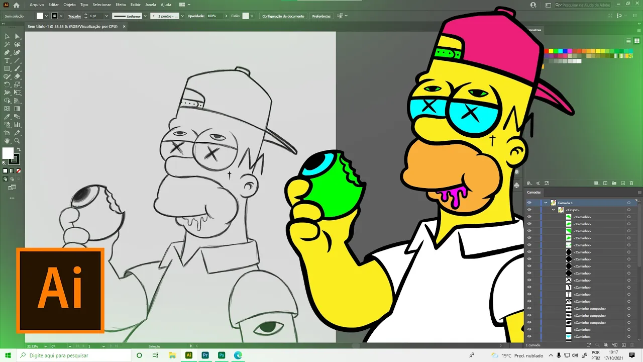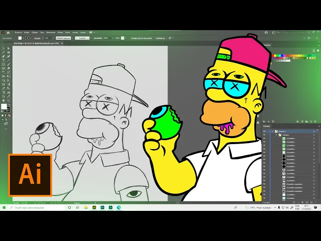 e fala málico rapaziada nesse vídeo A gente vai ver mano algumas dicas para melhorar na hora da tua vetorização beleza então ver deixa seu like inscreve no canal e bora para o vídeo muito peixe peguei essa imagem aqui que eu fiz do Homer Simpsons Simpsons e eu já fiz uma raça que eu tinha feito um esboço no Photoshop lá e eu vou trazer que nos preta para gente vai atualizar Então antes de mais nada mano tem que pega e bloqueia tá camadinha aqui mas ele gosta de mostrar o passo-a-passo um monte para vocês Então bloqueia