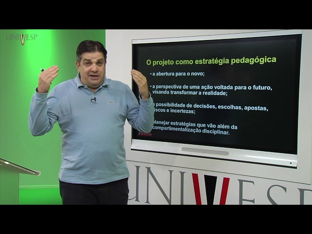 projeto ele permite planejar estratégias que vão além da compartimentalização disciplinar eu vou então agora apresentar para para vocês um vídeo ele é um vídeo gravado pela pela Univesp em 2009 vocês vão ver que eu tô ali também nesse vídeo bem mais novinho do que eu tô hoje aqui mas ele dá uma noção de como que essa aprendizagem baseada em problemas e por projetos quais são alguns dos princípios e como que ela trabalha como ela pode ser trabalhada introduzida no dia a dia da das escolas e da própria Universidade vamos ao vídeo então meninos são alunos