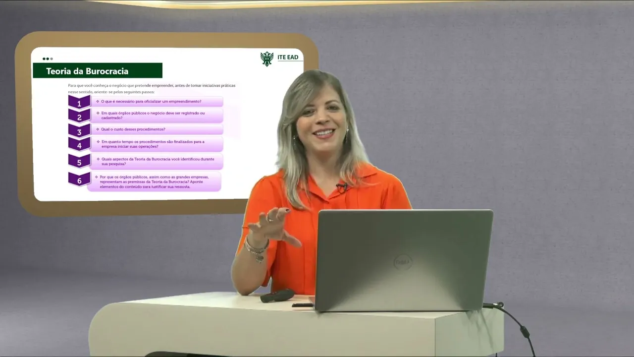 órgãos específicos para cada registro Qual o custo desse procedimento desses procedimentos Na verdade o que são alguns Então existe um curso para isso você vai levantar porque isso faz parte do curso de abertura da empresa enquanto tempo os procedimentos são finalizados para empresa iniciar suas operações Isso é uma informação importante também Quais aspectos da teoria da burocracia e você identificou durante o que a gente acabou de falar aqui durante essa nossa rápida pesquisa muitos processos burocráticos É verdade se vocês pararem para pensar dentro de um escopo do empreendedorismo abrindo um adendo aqui a nossa aula