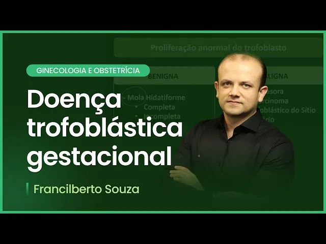 [Música] [Música] pessoal e agora para a gente finalizar a parte de sangramento de primeira metade a gente vai falar de doenças trofoblástica gestacional pessoal assunto Fantástico muito interessante vamos lá junto ó pessoal o que é doença trofoblástica gestacional doença trufa abaixo gestacional é a proliferação anormal do trofoblasto Tá mas precisamente do sincicio trofablasto tá ela se divide em formas benignas e formas malignas as formas benignas elas são chamadas molas e dapformes completo incompleta e as formas malignas a gente tem a mola invasora o Core o carcinoma tomou trofobástico do sítio placentário e o tumor epitelioide