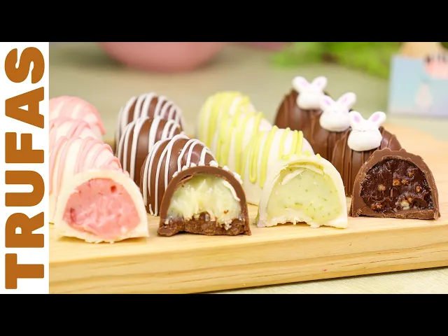 com uma casquinha fininha de chocolate recheio super saborosos e que derretem na boca as trufas são muito práticas de fazer e muito lucrativas e o melhor elas não vão nem ao fogo no vídeo de hoje eu vou te ensinar como fazer um dos produtos mais fáceis e acessíveis da Confeitaria as trufas recheadas ou bombons recheados antes de começar eu vou te explicar como é que esse vídeo vai funcionar eu vou iniciar o preparo da receita pela ganache de chocolate branco e vou te mostrar como saborizar essa ganache de três maneiras diferentes transformando ela em uma