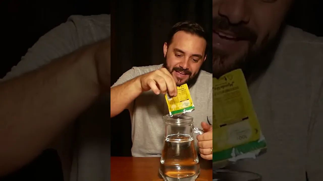 "Pegue uma jarra de água, como esta aqui. Ela vai representar eu e você, preste atenção. E este pacote de suco aqui vai representar Deus, a presença do Espírito Santo e Jesus em nossas vidas.