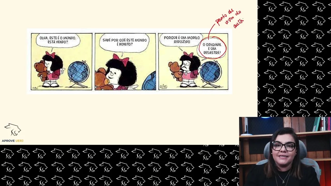 de vocês Olhe este é o mundo está vendo sabe porque este mundo é bonito Porque é um modelo reduzido o original é um desastre argumentação ou informação argumentação quando ele fala que ó o original é um desastre ele já tá apresentando o ponto de vista do autor tá o autor já Apresenta pra gente qual é a opinião dele a respeito desse dessa dessa tira as pessoas esperam que o ano que esteja começando seja melhor que o anterior Aposto que o ano que está começando espera que as pessoas é que sejam melhores mais uma vez a