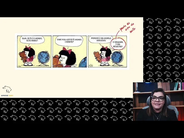 dele tá vendo Então essa essa discussão Isso é uma crônica algo muito atual tem algumas palavras né Tem pessoas que aparecem A Alen de gêneros por exemplo o Facebook algumas expressões que acontecem algumas falas que que ele apresenta são muito padas para o atual e é um texto curto não é um texto grande é um texto curto Ok Isso seria uma CR é isso que espero de vocês nesse momento eu quero que vocês façam o quiz tá e qualquer dúvida que vocês tiverem vocês revejam essa aula e a gente se encontra na próxima aula
