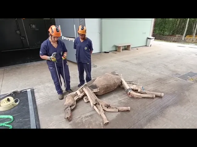 ficar de pé trazendo o movimento de cabeça para trás ela neutraliza a força de elevação do animal e consequentemente ela consegue conter mais tempo esse indivíduo no chão para que as equipes possam trabalhar agora tá sendo feita a contenção e nós vamos fazer a passagem de fita né então uma das meninas tá segurando o passador de fita a outra a fita de Resgate Para que a gente possa fazer o manejo desse animal eventualmente colocá-lo em cima da prancha arrastar tirando ele da zona quente por exemplo levando para uma zona mais segura Então vai ser feita