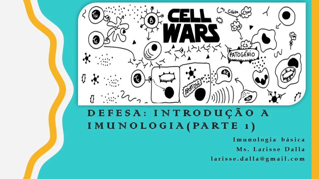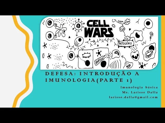 oi oi pessoal eu sou professora larisse e essa é a nossa aula de defesa introdução a imunologia nesta aula vamos aprender a conceituar imunologia identificar os tipos de resposta imune e descrever as principais células e órgãos do sistema imune essa aula é dividida em duas partes então um primeiro momento vamos aprender sobre as células e no segundo sobre os sistemas e órgãos do sistema imunológico a imunidade é definida como a resistência à doença especificamente a doença infecciosa o conjunto de células tecidos e moléculas que medeiam a resistência a infecção é chamado de sistema imune ou