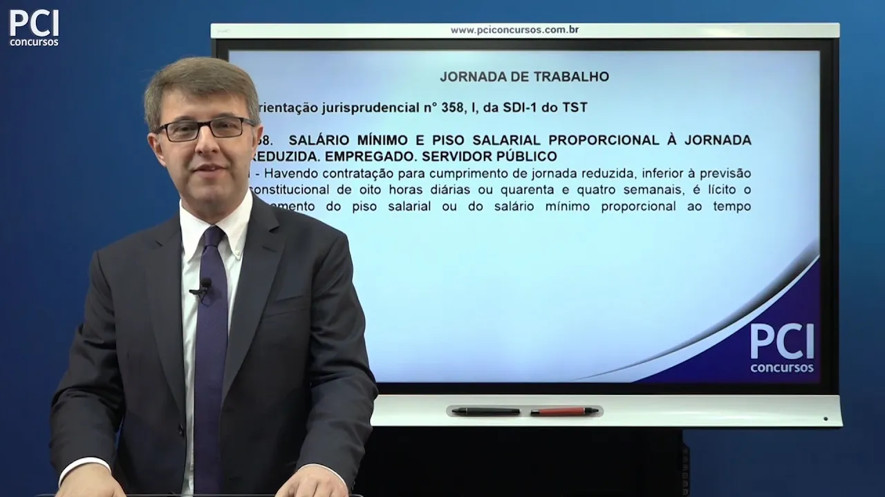 melhor ao salário mínimo nacional certo pessoal então vejo o j358 e tem um que é o que nos interessa o item um havendo contratação para o cumprimento da jornada reduzida inferior a previsão constitucional que há a previsão constitucional base de 8 horas diárias e 44 semanais é lícito o pagamento do piso salarial ou do salário mínimo proporcional ao tempo trabalhado piso salarial aquele que estiver previsto em norma coletiva em acordo ou convenção coletiva de trabalho salário mínimo salário mínimo nacional mas nós sabemos que a estados da federação que por meio de leis estaduais estabelecem salários
