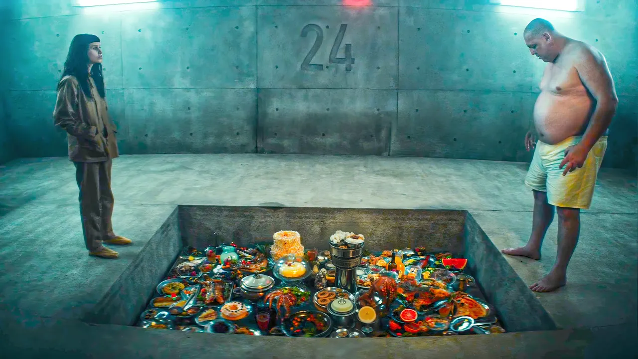 Eventually all the pieces land on the bottom, where cannibals grab them to feed. The next day the platform brings the pizza Zamiatin wanted and he finally gets to eat. Robespierre eats his dish and throws the food of dead prisoners in the toilet.