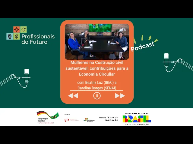 [Música] nesse episódio do podcast profissionais do Futuro a gente conversa sobre a presença de mulheres na construção civil sustentável e as contribuições pra economia circular como a economia circular e a construção civil sustentável contribuem pra economia verde e quais são as oportunidades PR as Mulheres nesse setor para esse papo Super Interessante que eu tô muito curiosa eu recebo aqui hoje a Beatriz luz Beatriz é autora de livro é fundadora de uma consultoria que é Exchange For Change atua com bastante no Brasil e fora do Brasil também é Presidente do Instituto Brasileiro de Economia circular bem-vinda