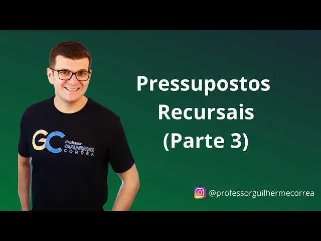 Oi Oi gente tudo bem Tudo tranquilo então vamos seguir aqui para terceira e última parte dos pressupostos recursais a gente vai nessa aula falar dos olhos dois últimos pressupostos recursais intrínsecos que a gente tem mas antes disso se não é inscrito no canal se inscreve dá o seu joinha deixa seu comentário aqui compartilha com quem tá estudando com quem precisa estudar processo civil e claro não assistiu as demais aulas de pressupostos recursais aqui em cima tá indicação para que você possa assistir além Claro de conferir todas as outras aulas aqui do canal Então vamos seguir