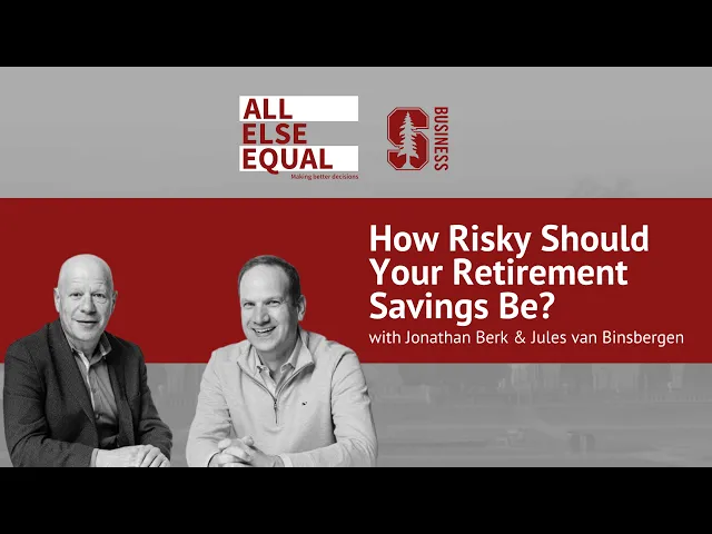 [Music] hi I'm Jonathan Burke professor of Finance at The Graduate School of Business at Stanford University and I'm Jules fan binsbergen a finance professor at the Wharton School of the University of Pennsylvania and this is the all else equal podcast welcome back everybody today what we're going to do is finish the episode on retirement in the retirement episode we just concentrated on the question of how much should you save for retirement and when and we did not address the question of what should you do with your retirement savings as far as Investments are concerned and
