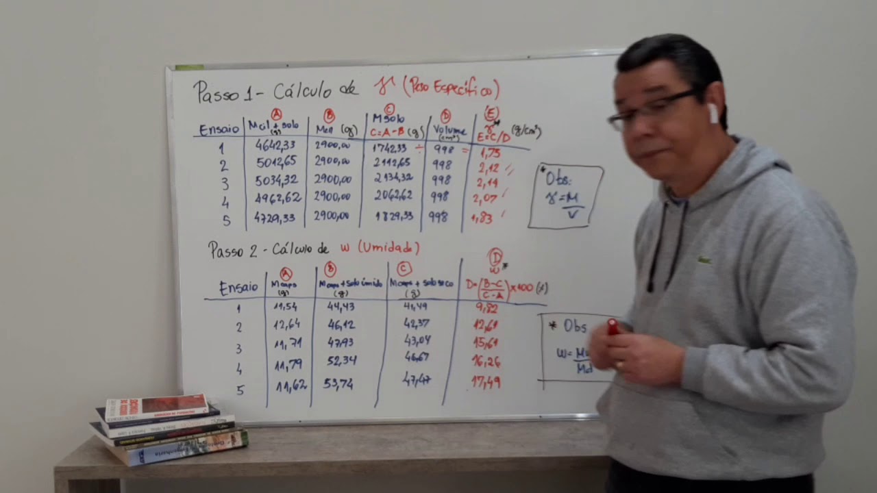 aí [Música] [Música] e são necessários 3 kg de solo para o ensaio de compactação com reuso amostra deve ser destorroado que passada pela peneira de abertura 4.8 MM Cruz e em seguida o solo é espalhado pela bancada é uma pequena quantidade de água é adicionada o primeiro ponto da curva de compactação deve estar preferencialmente cinco por cento abaixo do teor de umidade ótima estipulada e com auxílio da espátula mistura-se o solo com a água até se obter uma amostra homogênea a é apoiado em uma base rígida o cilindro metálico é fixado em sua base e