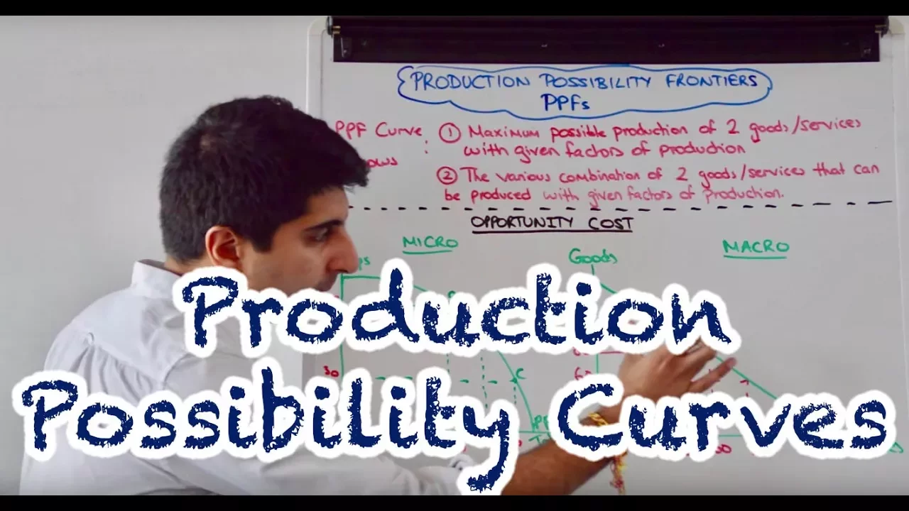hi everybody production possibility frontiers or production possibility curves are very useful tools to illustrate the ideas of scarcity and choice in economics these curves are great because we can look at them from a micro perspective and from a macro perspective what does the curve or the frontier actually show well on a micro level it shows us two things the maximum possible production of two goods or services that can be produced with a given level of factors of production but it also tells us the curve the various combination of two goods and services that can be